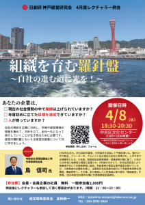テーマ「組織を育む羅針盤」~自社の進む道に光を~ レクチャラー 島 信司 氏(有限会社野間田鍍金工場 代表取締役会長) 日 時:2026年 4月8日(水) 18:30~20:30(開場受付 18:00…